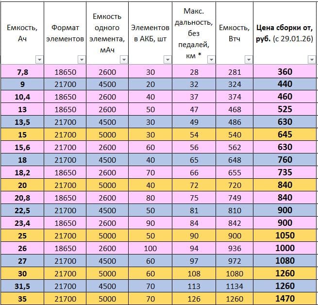 Поэтому вывод такой — запас емкости АКБ идет только на пользу её ресурсу и дальности пробега. Тем более вес современных АКБ из ячеек 18650 или 21700 крайне невелик — одна ячейка весит от 45 до 70 грамм.
