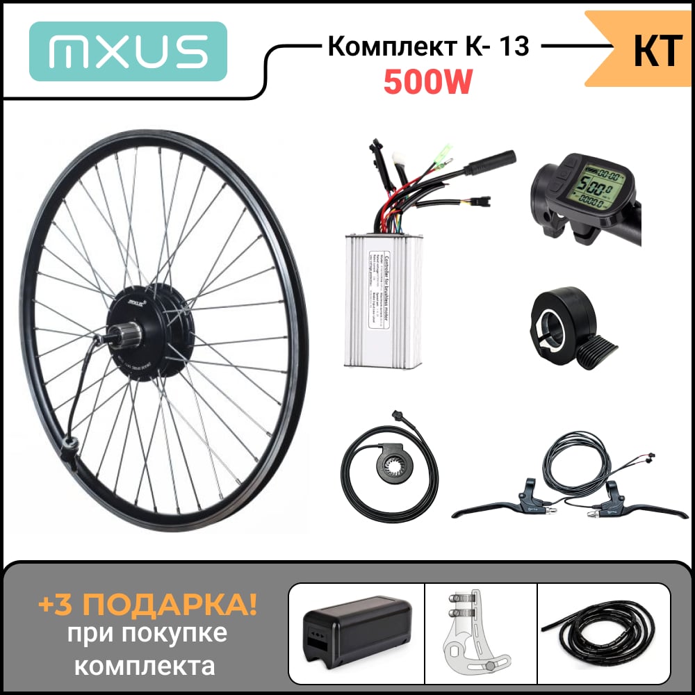 Комплект К‑13 увеличенной мощности для самостоятельной электрификации велосипеда с мотором MXUS и синусным программируемым контроллером КТ. Данный комплект содержит все необходимые компоненты для переделки обычного велосипеда в электровелосипед кроме АКБ и зарядного устройства.