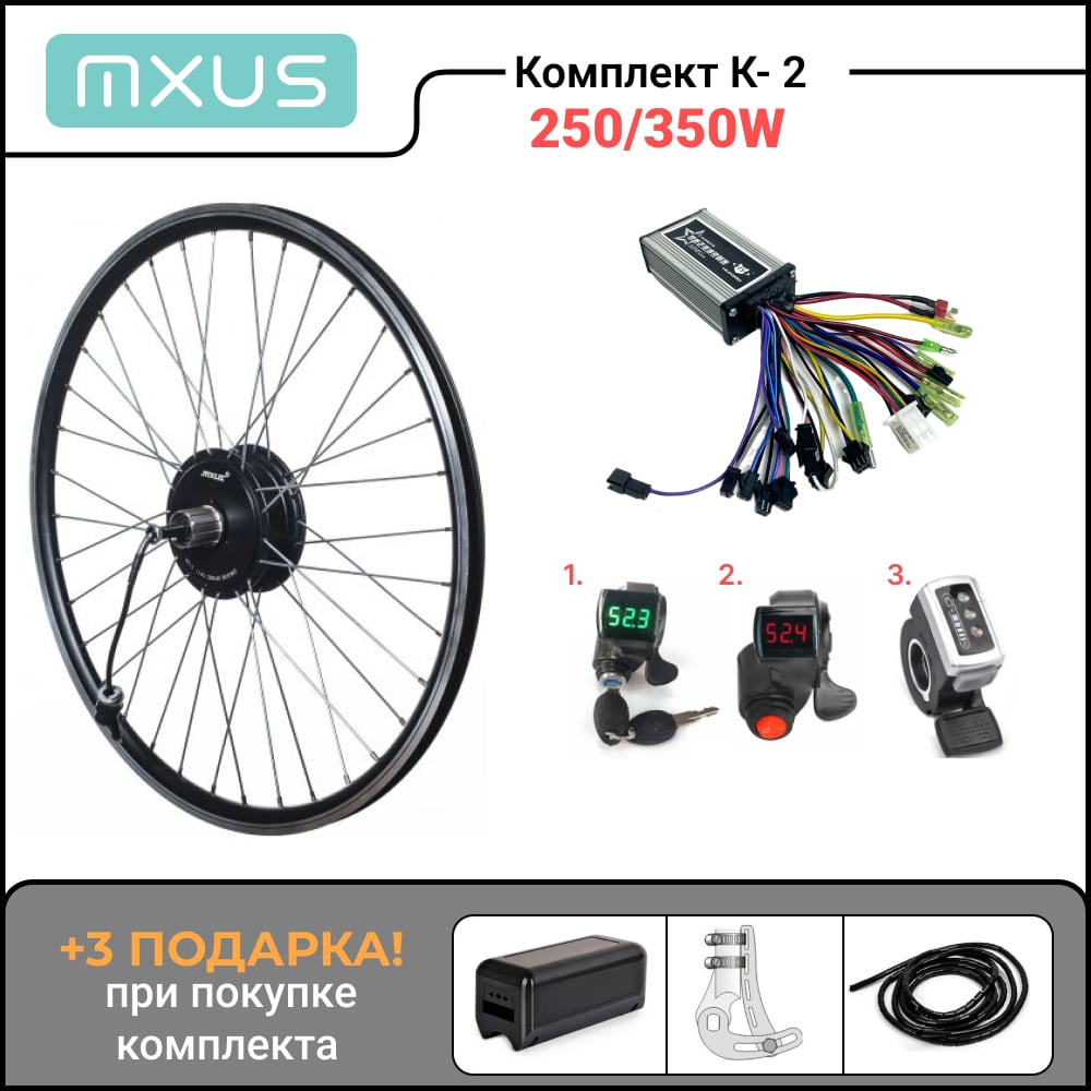 Доступный и простой в установке электро мотор для велосипеда в комплекте К‑2 со скидками и подарками, с доставкой и гарантией. Этот комплект часто устанавливают на дорожные и складные велосипеды, например Аист или Стелз, где присутствует только ножной тормоз, а установка датчика педалирования (PAS-датчик) часто требует замены каретки. От комплекта К‑1 этот комплект электровелосипеда отличается мотор-колесом более известного производителя MXUS. Электромоторы MXUS зарекомендовали себя с хорошей стороны.